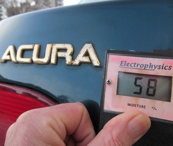 transoms after only a couple of years. It is also worth noting that US MIL-specs permit up to 18% moisture in plywood so you also have to adjust for that in your interpretation. Plywood will not start to decay until it hits 21% moisture ( as mentioned in the MIL-spec). Running your meter along a deck will show higher readings when it passes over a plywood bulkhead bonded to the underside and again this is not necessarily an issue. I once witnessed a marine surveyor put his meter on teak decks and state the were "saturated". Be aware that one cannot determine the condition of underlying core through teak decking. Such decks must be metered from the underside where and if accessible. This was the same idiot I'd previously watched put a meter on a lead keel and pronounce it "saturated". |