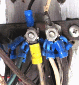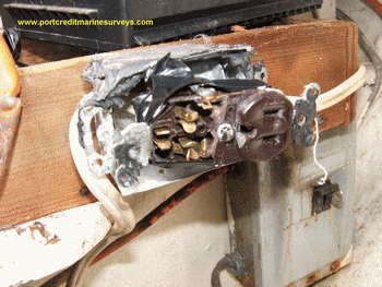 | The outlet (below left) is on a brand new $1,000,000.00 motor yacht and the one on the right a new $600,000.00 trawler. Some builders still don't know there are standards. If an electrician installed outlets like this in your house he'd lose his license and you'd have a fit but it didn't seem to bother the purchasers of these boats. | ||