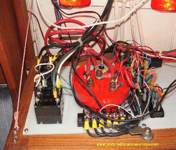 |  Port Credit Marine Surveys & Yacht Delivery  Society of Accredite Marine Surveyors  American Boat & Yacht Council   BoatUS®                                                | STOOPID BOAT TRICKS BY BOAT BUILDERS I was once admonished by a prominent industry insider for having the temerity to oppose the opinion of a boat builder who had been building boats for thirty five years and knew what he was doing. That prompted this feature of "Stoopid Boat Tricks By Builders". Most new boats sport a sticker saying "NMMA Certified using ABYC® Standards". Note the significant semantic difference between " using ABYC® Standards " and " to ABYC® Standards ". Others have a label saying "Proud Member of ABYC®". Does this mean they build to the standards ? I am occasionally asked if its worthwhile to have a new boat surveyed. I usually advise against paying for a survey but suggest instead hiring me to spend a couple of hours going over the boat with you. I'd also suggest you think about a complete survey a couple of months before the warranty runs out. Take a look at the photos below and make your own decision. | |