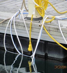 Hot Docks and electric shock drowning In 1999, 8 year old Lucas Ritz was electrocuted while swimming in a fresh water marina. The coroner wrote it off as a drowning. Lucas' father didn't believe it and performed his own investigation. Kevin spent years educating himself and subsequent studies by Kevin and Captain (ret'd) David Rifkin USN found more than 200 reported "drowning" fatalities in fresh water marinas that were actually electrocutions. This phenomenon is now known as "electric shock drowning" and is still ignored by most marinas. Essentially what happened was that a DC conductor melted against an AC conductor and fed AC current down the shaft into the water. I implore you to take the time to watch this video by Kevin Ritz who explains how faulty boat wiring caused his sons death. Captain David Rifkin a consultant to USCG, BoatUS® and ABYC® has much more information on this and other marine electrical issues on his website. AC current can get into the water through faulty onboard wiring as in the Ritz example, faulty shorepower supply or simply because one of Darwins rejects unplugs his boat and leaves a live cord lying on the dock. All photos in the three columns below were taken on the docks around my own boat. at Port Credit Yacht Club. I've posted only a few of the over 50 photos I took within just a few minutes. Proof that common sense is anything but. common. In my surveys I write more recommendations on electrical issues than any other area. When I point out an unsafe battery installation or explain why electrical equipment in a gasoline engine compartment must be ignition protected, most people seem to understand, they rarely actually fix it but I've done what I can. For some strange reason otherwise seemingly intelligent people do not grasp the importance of simple things like polarity indicators , G.F.C.I.'s or proper AC ground systems. For more information on boats electrical AC and DC systems including battery installations and how to inspect them, I recommend you take a look at Marine Survey 101 Please do not take this stuff lightly. |