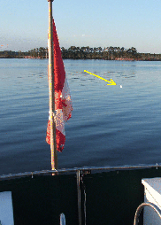the party. Day anchor signals (black ball) are a rarity in fact the only one I have ever seen is my own even though they are required by ColRegs. In one case in broad daylight seven boats in a designated anchorage were hit by a cruise boat that had lost steerage, only the one with a day anchor signal was compensated. The insurance company found the one exception to the use of anchor signals in the designated anchorage rule. The Bitter End - No, not your last divorce. Yet another ground tackle subject of controversy. Most secure the bitter end of the rode with clamps, shackles or some mechanical means but what happens when you have yo get out right now ! Do you have huge chain cutters at the ready ? Some advocate having the last 10’ of your chain secured with rope that you can easily cut if you have to escape in a hurry and some believe in not securing the bitter end at all. That anchor float will help you find your tackle later. Let me know if you turn up a 22lb. Danforth and 250' of 3/4" rode at Allens-Pensacola Key. The very nature of this missive leans towards the negative and Mama tol' you there'd be days like that. Did she also mentions the free lobsters in Dry Tortugas. ![]()