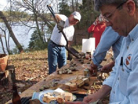 ![]() Tom Assenmacher shovels oysters on to the table in his front yard on the Yeocomico River. Tom & Kaye run the Alberg 37 Association website ![]() Huge Georgia clams next to my hat ![]() Delaware bluefish |